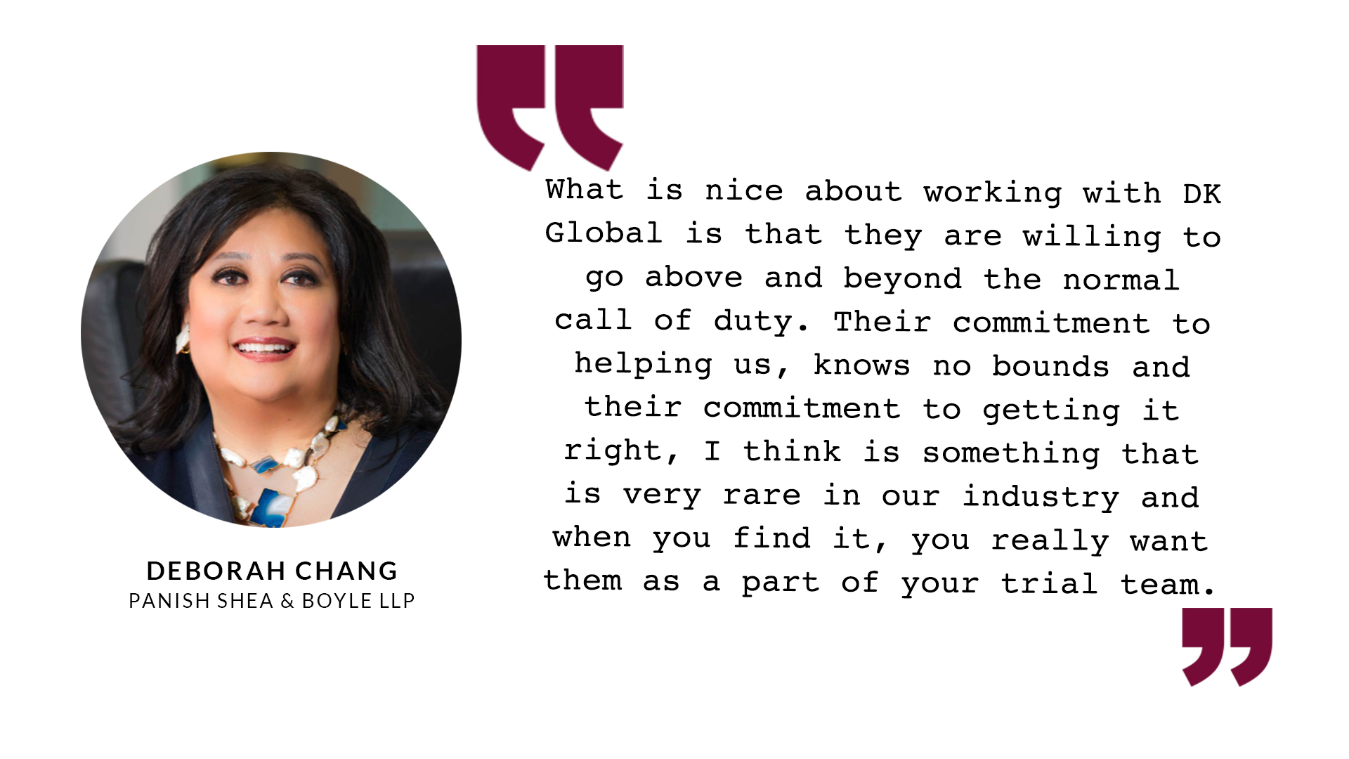 Knowing that we work alongside professionals who often are fighting against all odds, on behalf of their clients, pushes us to meet that same level of resolve. Our willingness to do what it takes to make their job easier means we never shy away from a challenge as we carefully refine our production process as technological capabilities continue to advance. We make sure to provide a hands-on approach when connecting with attorneys to produce effective and telling presentations. In short, at DK Global, we can show you that pigs really do fly.